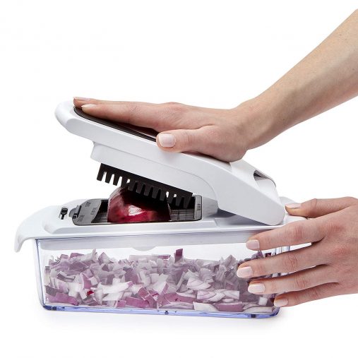 The clear body lets you monitor progress as you cut up carrots, cucumbers, squash, zucchini, and spices like ginger. Because it requires no electricity, the Fullstar Vegetable Chopper can be used anywhere.