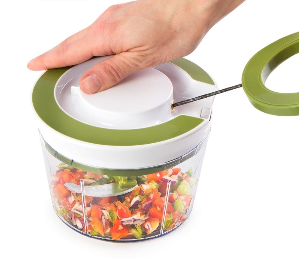 Easy to store. This manual food chopper has advantages of simple structure, economy, practicability, compact volume and convenience. Be good for small kitchens, RVs, travel, and camping.