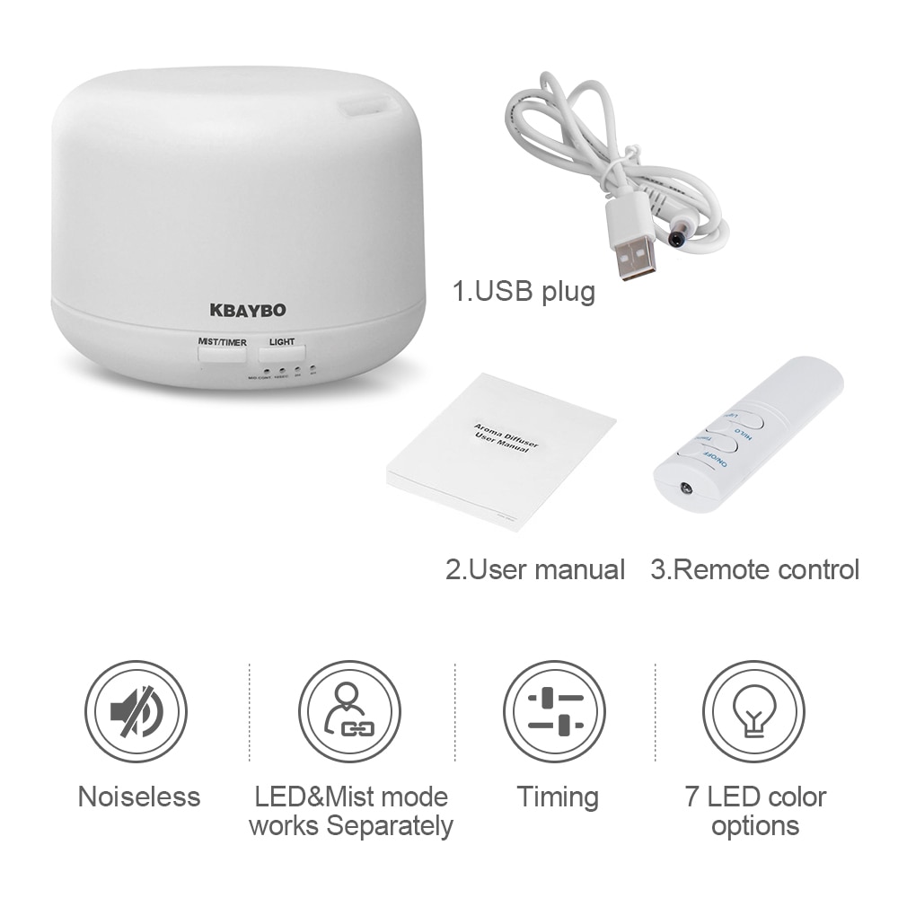 Classic columnar shaped can be easily time-adjusted, changes 7 different light colors. USB Cable provided may be attached to laptops and PCs. Purifies the air of your home and refreshes the environment. You can program de device manually or by remote.